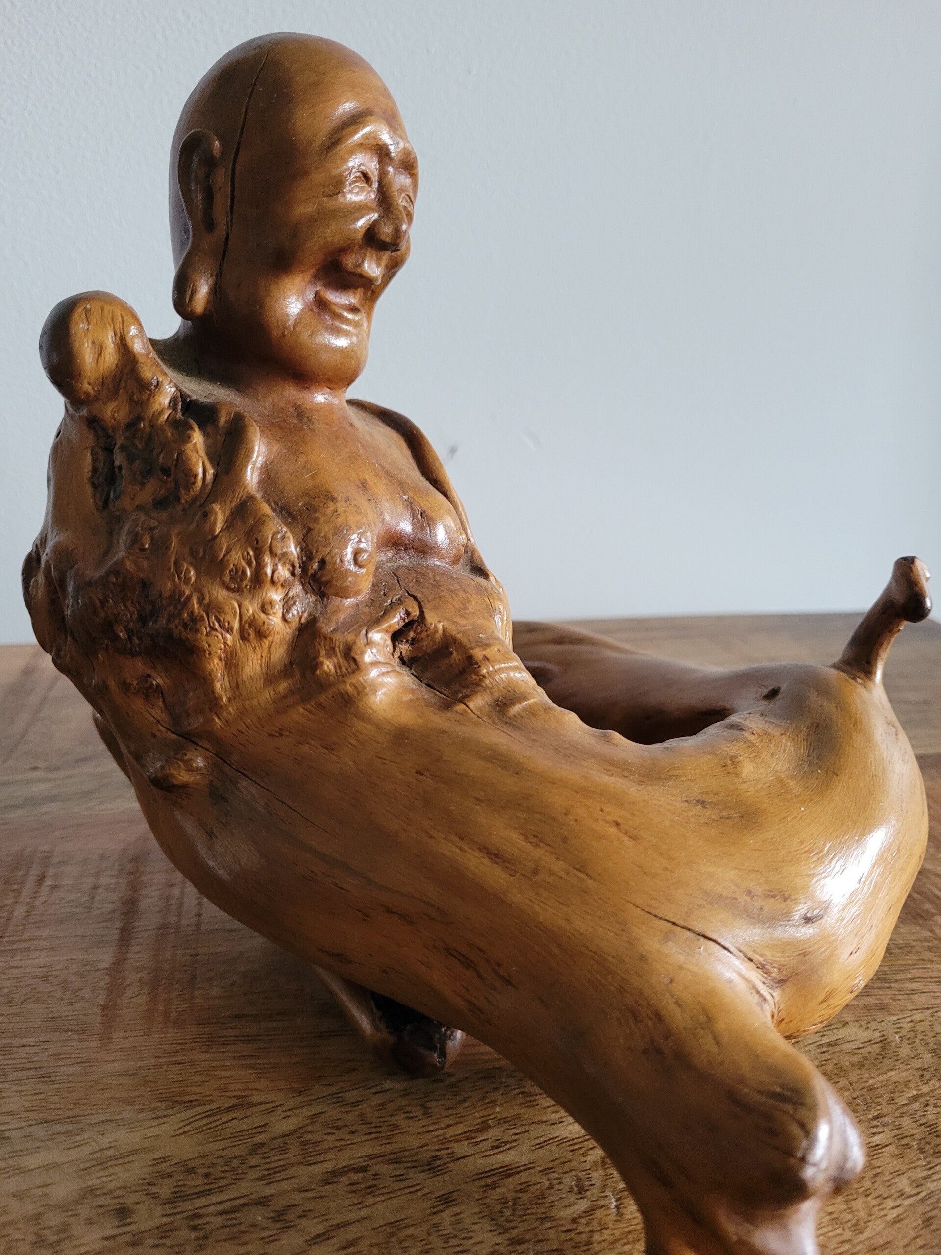 Werkelijk waar een prachtig stukje vakmansschap dit houtsnijwerk van deze Boeda
