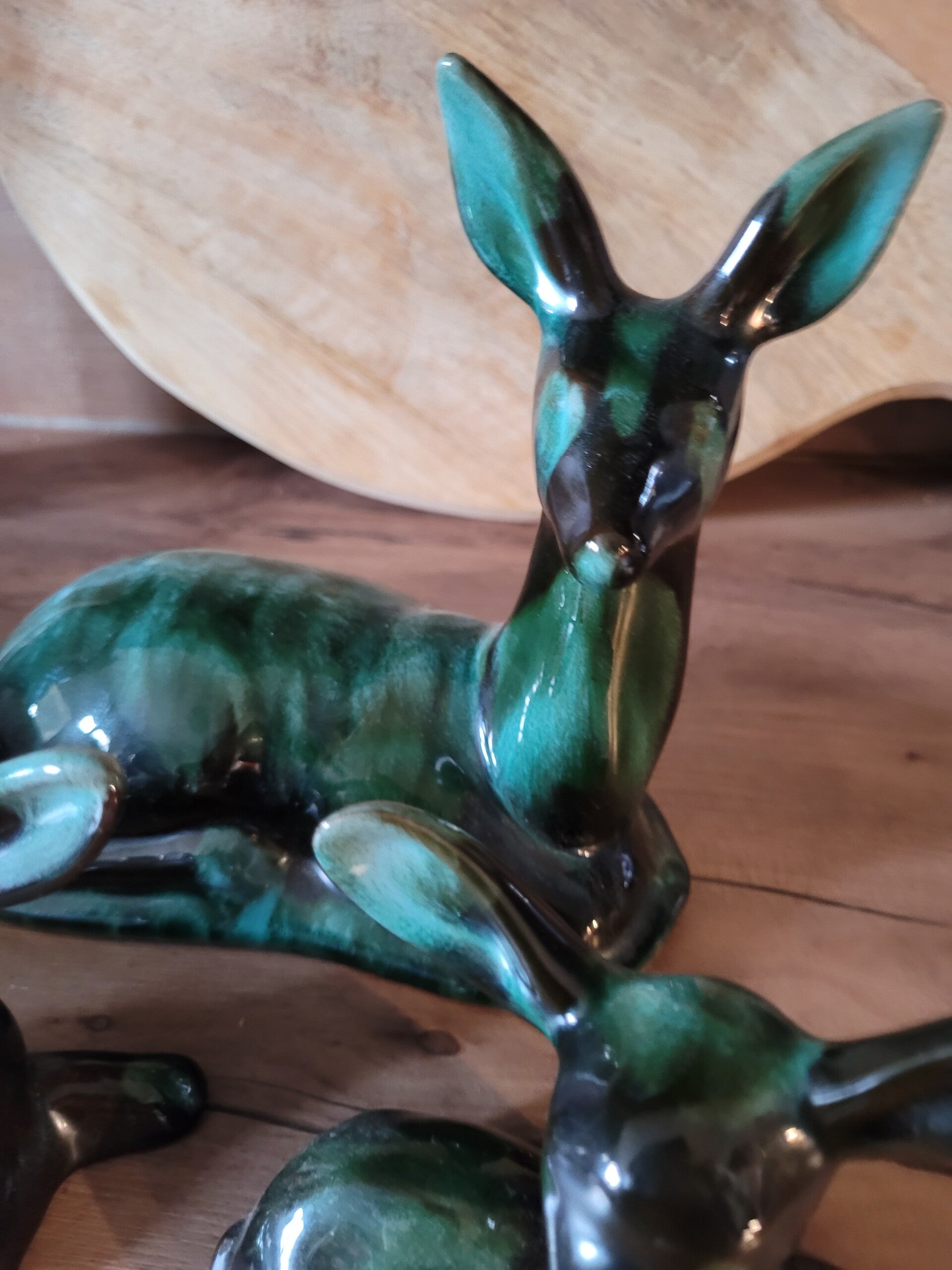 Het ernorm veel gezochte rode klei pottery van blue mountain een gehele familie hertjes.