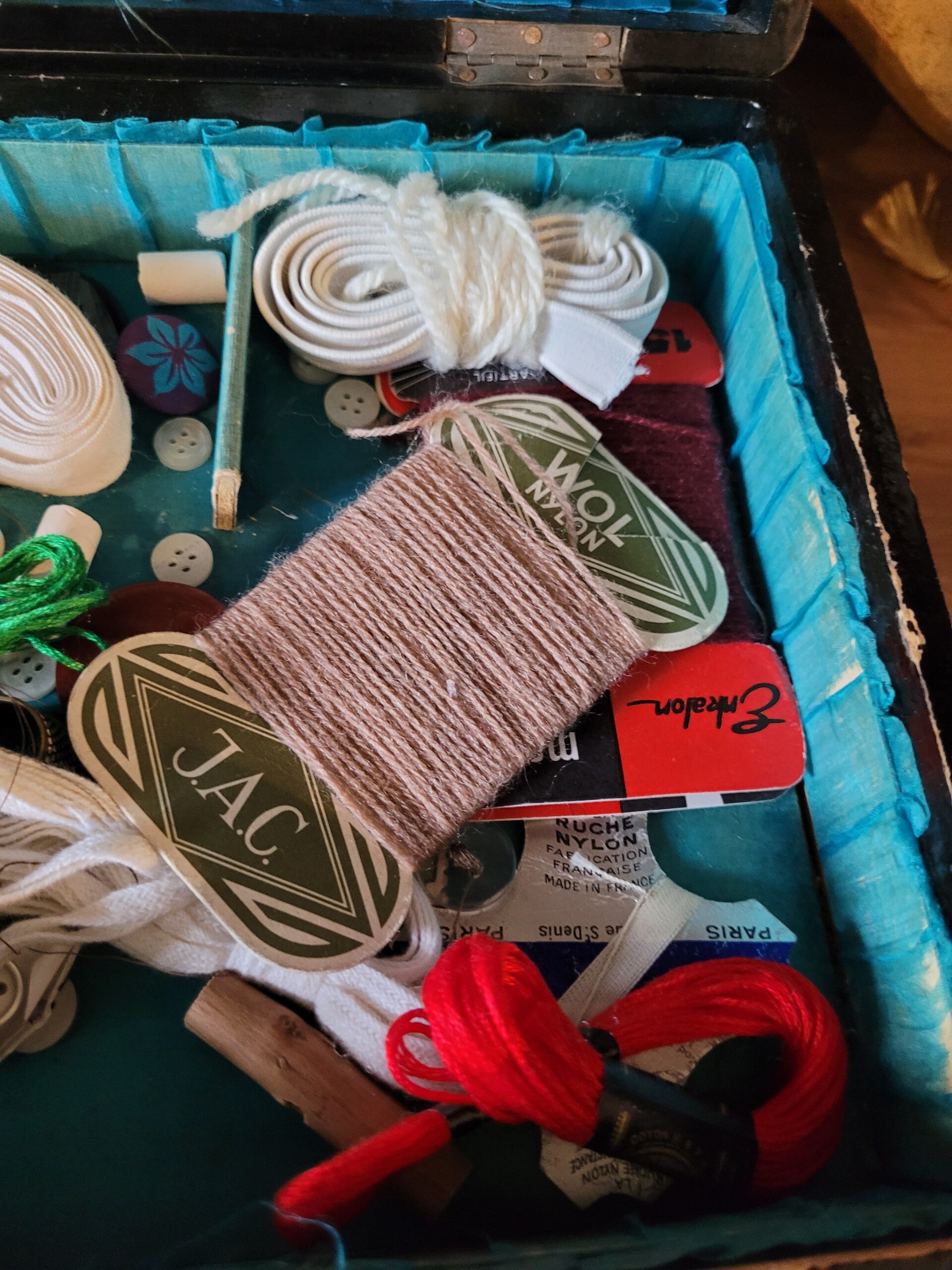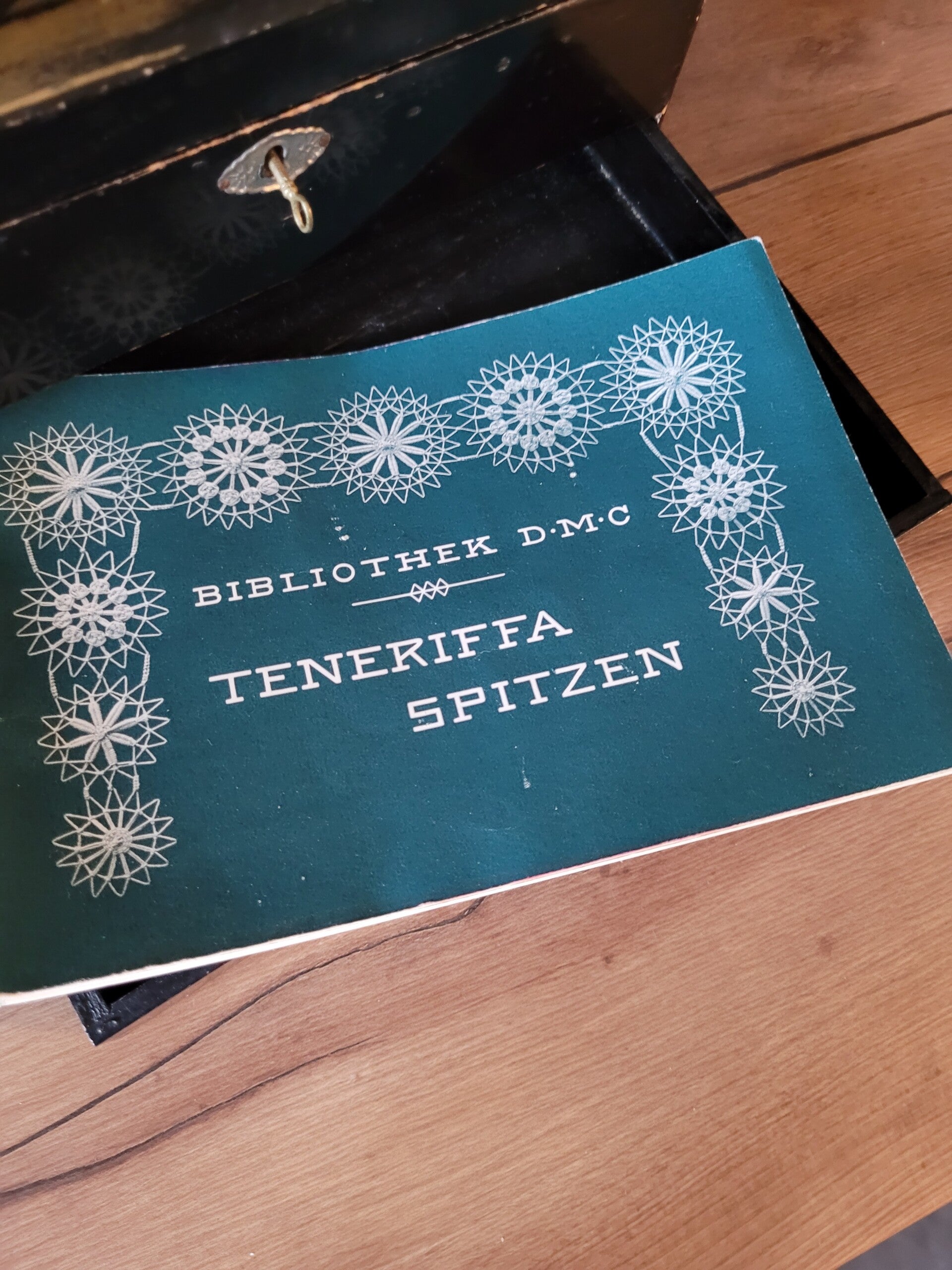 Compleet met naaigerei en een voorbeeldboekje over naaipatronen voor kantekleedjes.