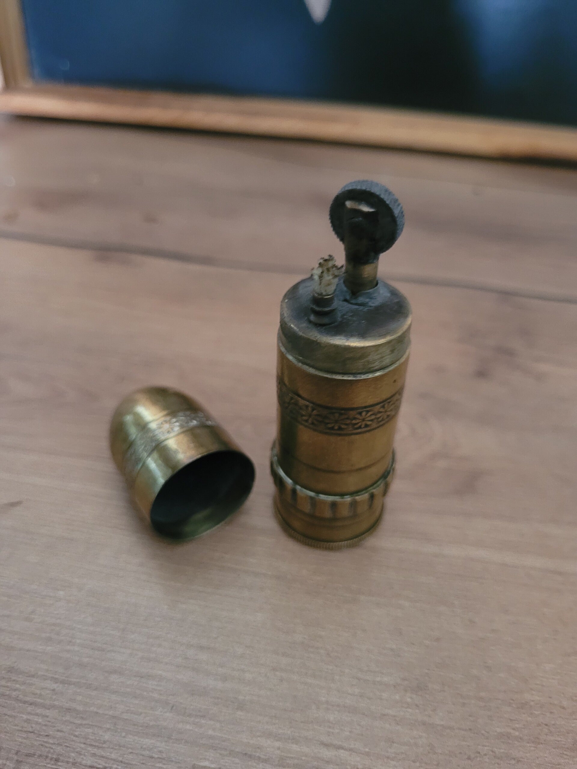 Dit is een trendsart bezine aansteker met kogel huls uit de eerste wereldoorlog.