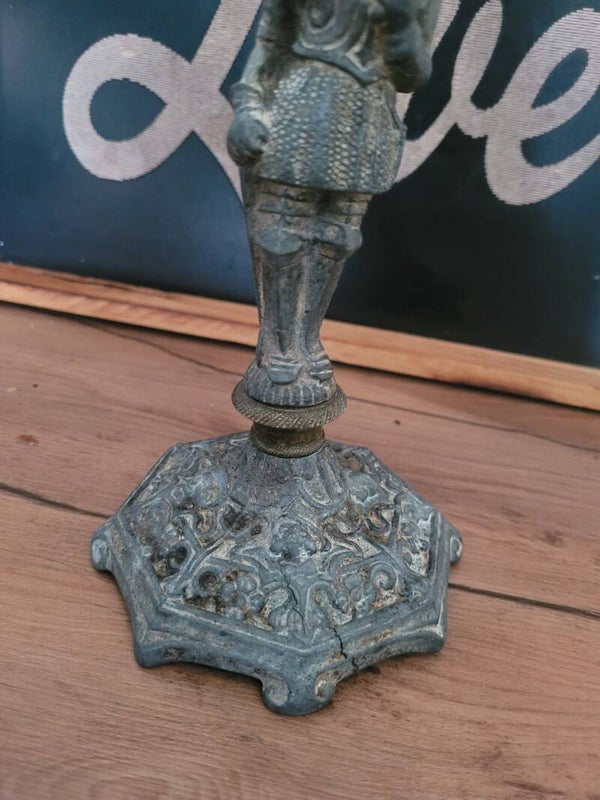 Zo uit het kasteel uit Frankrijk deze zeer oude kaarsenhouder in de vorm van een ridder.